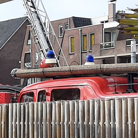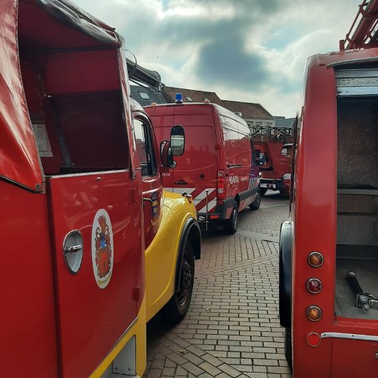 En elk team kwam voor zijn oefening met loeiende sirene het Marktplein opgereden.