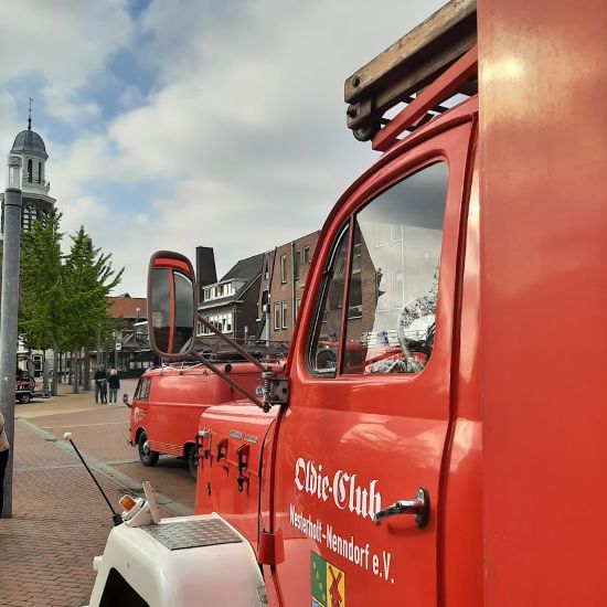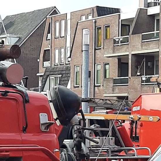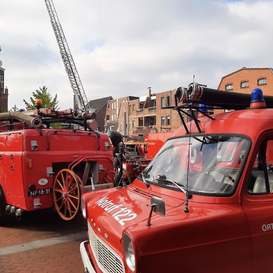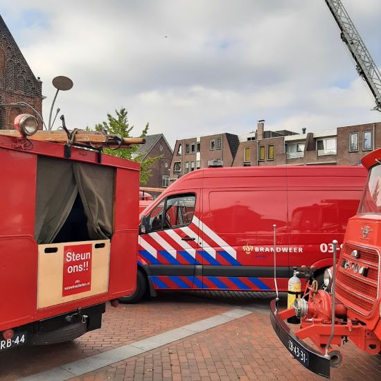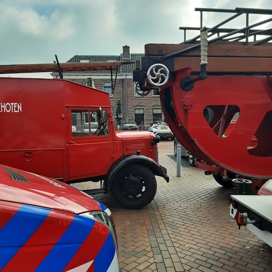 Oude brandweerwagens op het Marktplein in Winschoten.
