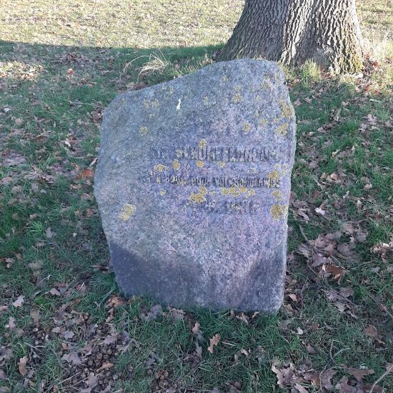 Ik rij wel eens in de auto langs een grasveldje met wat bomen en een steen. Tijdens een wandeling liep ik eens langs die steen om te kijken wat er op staat.
