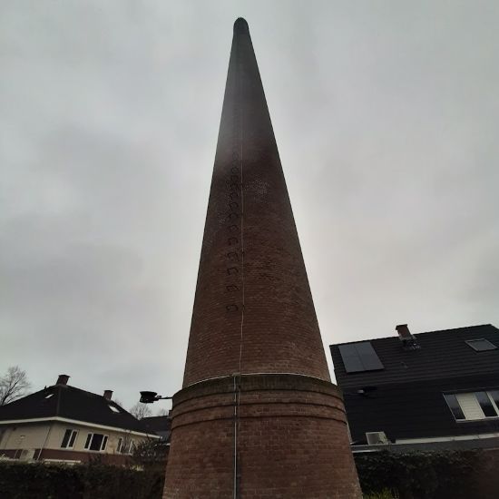 Midden in een woonwijk van Winschoten staat deze buiten gebruik zijnde schoorsteen, een overblijfsel en dus herinnering aan de gesloopte Melkfabriek.