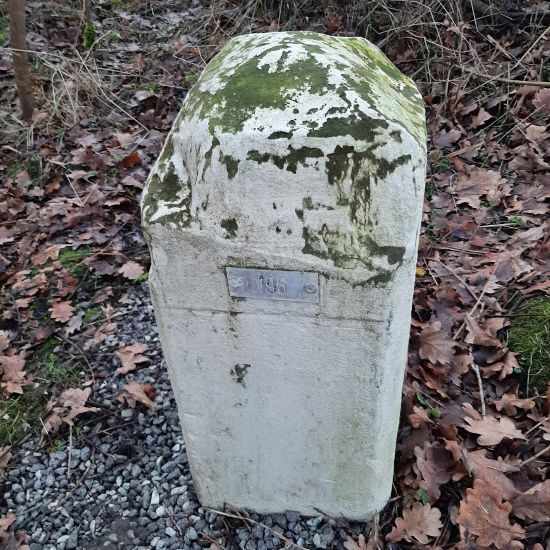 In Nederland gaat men naar beneden, dan is men in Duitsland en daar is een voetpad langs een hek onder de snelweg door, men moet gebukt lopen en weer boven aangekomen staat hij dan om de hoek.