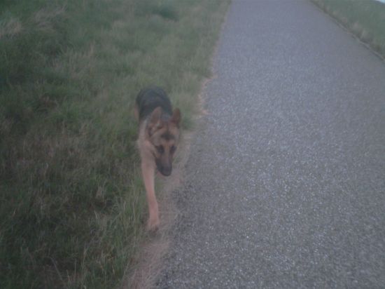 loopt Quandy altijd uit zichzelf aan de kant van de weg op het gras? Ik had ooit een hond die persé op het asfalt bleef lopen ; omdat het gras prikte denk ik.