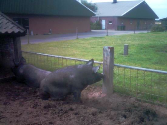 Dit zijn Friesche koeien die vlakbij de Elfstedenbrug in Bartlehiem staan, zij pasten op mijn auto, en kwamen heel nieuwsgierig kijken wat ik daar wel moest.