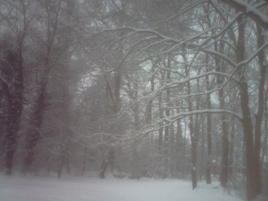 Een winters tafereeltje in een van de bossen die Winschoten rijk is.