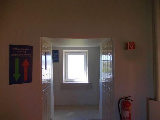 Het touwtje zit verbonden aan de schakelaar en die zit rechts boven de deur. Nu zit het al zo sinds ik hier woon, dat het touwtje dat vastzit aan de schakelaar boven de deur langsloopt en middels een ringetje dat in de muur geschoefd zit aan de linkerkant naar beneden loopt. Daar zit dan een ring aan waar ik aan trek om het licht aan te zetten.