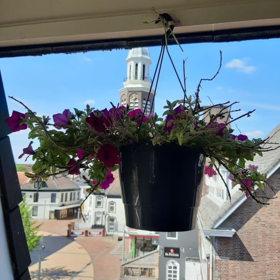 Winschoten maakt zich op voor pinkstermaandag, dan mogen de terrassen weer open, mits men zich houdt aan de voorschriften. Dus mijn uitzicht is alweer iets veranderd. Ik moest naar beneden om te kunnen lezen wat er staat.