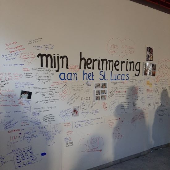 Tijdens de open dag was er in de ontvangsthal de mogelijkheid om iets op deze muur te schrijven of te tekenen.