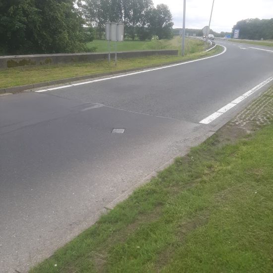 Aldaar, op de afrit, stond een grenspaal in de weg en deze is ingeruild voor een plaatje.