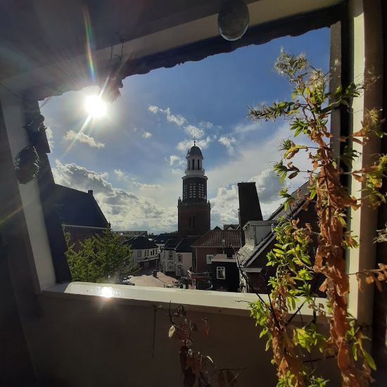 Bijzonder die ronde ‘patrijspoortramen’. Het is wel een joekel van een kerk, zo zie je pas hoe groot eigenlijk.. Mooi uitzicht heb je!