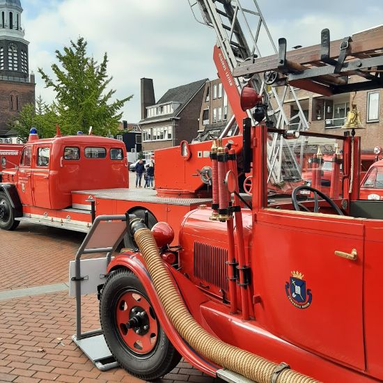 Oude brandweerwagens op het Marktplein in Winschoten.