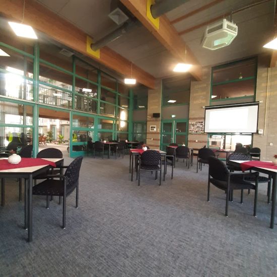 Dan neem ik u nu mee naar binnen in de kantine van appartementencomplex Botanicahof.