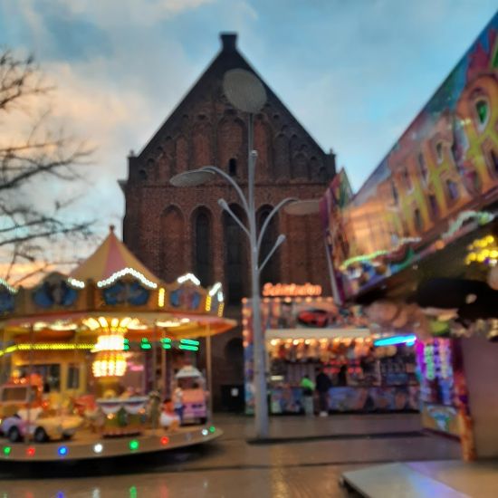 Er was kermis op het Marktplein in Winschoten rondom de Marktpleinkerk uit 1275.