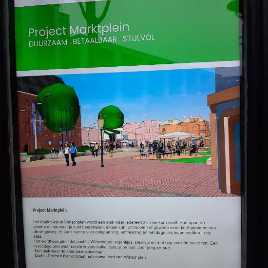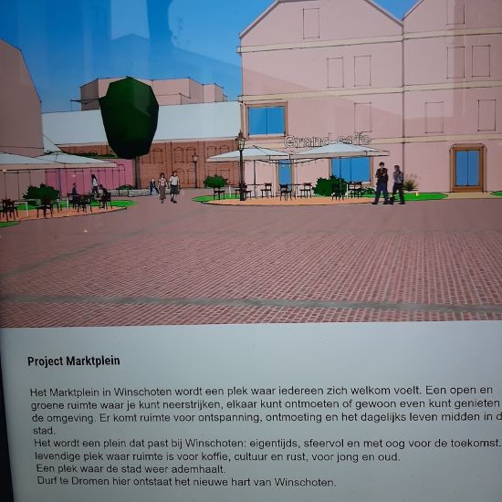 Op een scherm ergens in Winschoten zijn filmpjes te zien over allerlei prokecten.