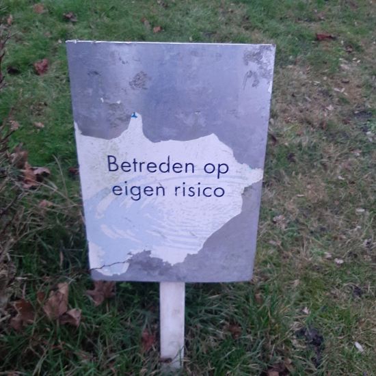 Zullen ze nou eerst gedacht hebben aan een bordje in het gazon en nadien de tekst bedacht, of zullen ze bedacht hebben dat een bordje noodzakelijk was om deze boodschap te verkondingen? Niet echt een vraag, meer een gedachte. En wat voor risico?