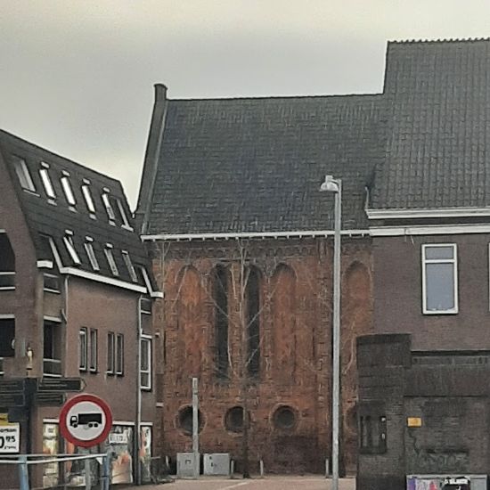 En kijkt men aldaar naar links dan ziet men de bijna 800 jaar oude Marktpleinkerk.
